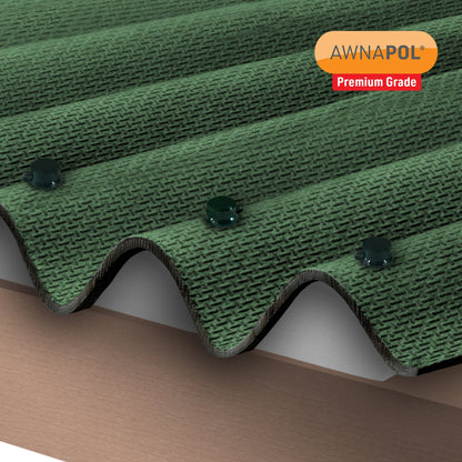 AWNAPOL is a Premium Grade Corrugated Bitumen Roofing Sheet. Bitumen roofing sheets have been used for many years for roofing applications on outbuilding, sheds, log stores and similar applications. AWNAPOL is thicker and more robust than CORRAPOL-BT and is available in 2 colours; black and green. The AWNAPOL bitumen sheets simply overlap on width and length to reduce the need for cutting end sheets.