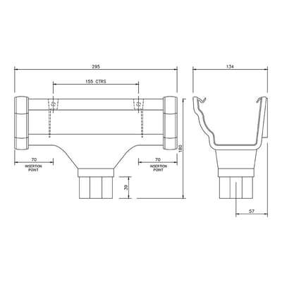 - Running Outlet (RON1) can be connected to either 65mm Square or 68mm Round downpipes.