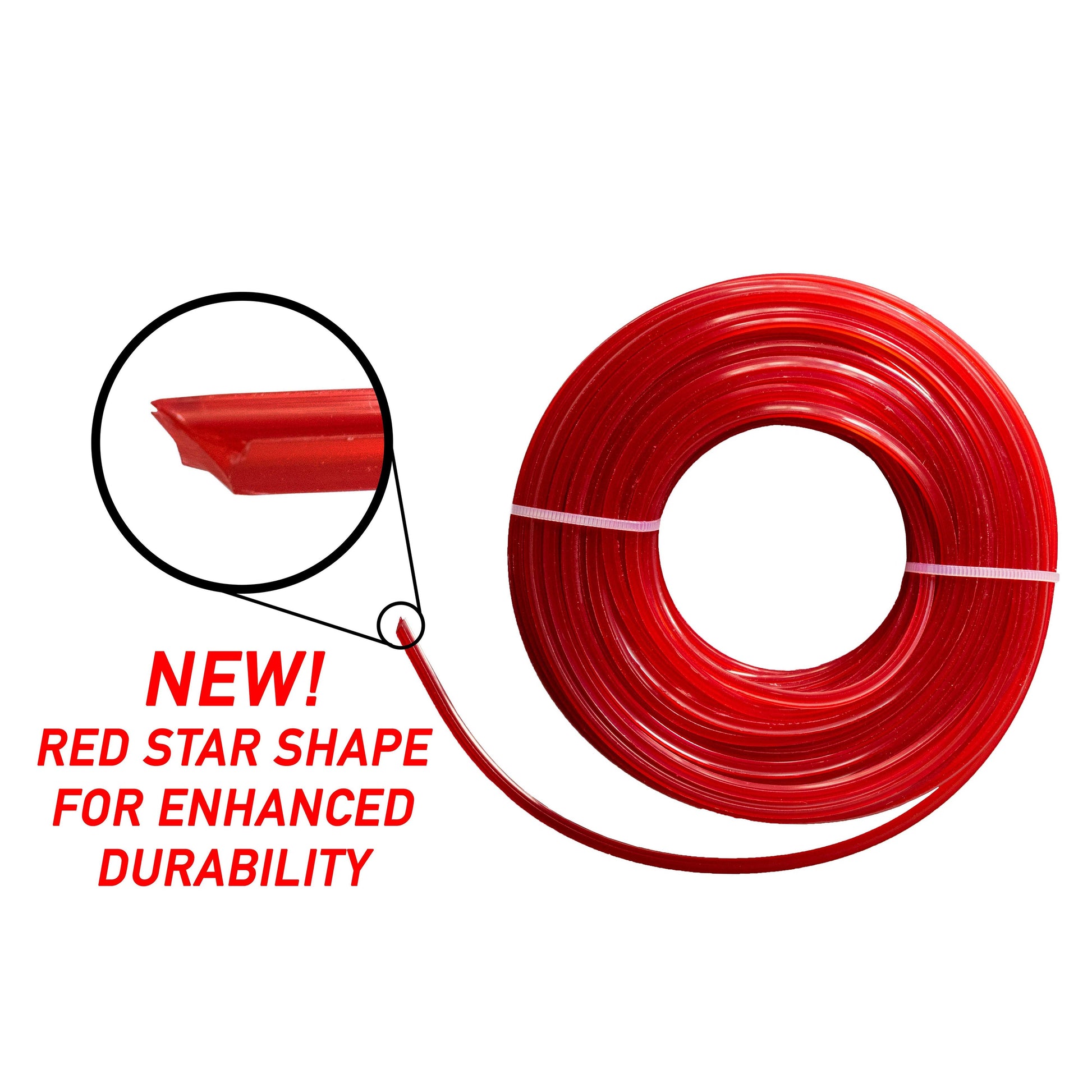 The unique red star shape of the line is not just visually striking but serves a crucial purpose in enhancing its durability and effectiveness. Each star point is strategically crafted to maximize cutting efficiency and minimize wear, ensuring prolonged use without compromising on performance. This distinctive design also allows for smoother operation, reducing drag and resistance while delivering precise cuts with every pass.